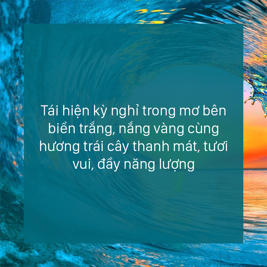 Tiếng sóng vỗ rì rào, làn sương muối trong không khí và ánh nắng ấm áp kết hợp với chiếc lều sang trọng trên bờ biển tạo nên lối thoát mùa hè cho những giấc mơ ban ngày của bạn. Tái tạo nơi ẩn náu này với các tầng hương trái cây nhiệt đới thanh mát, Fresh và đầy năng lượng